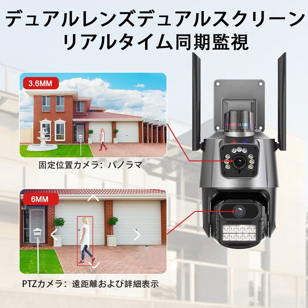 防犯カメラ 屋外 家庭用 ワイヤレス WIFI 高画質 デュアルレンズ 監視カメラ 自動追尾 人体検知 360°PTZ機能 首振りで死角なし 双方向音声 IP66防水 警報録画 簡単操作