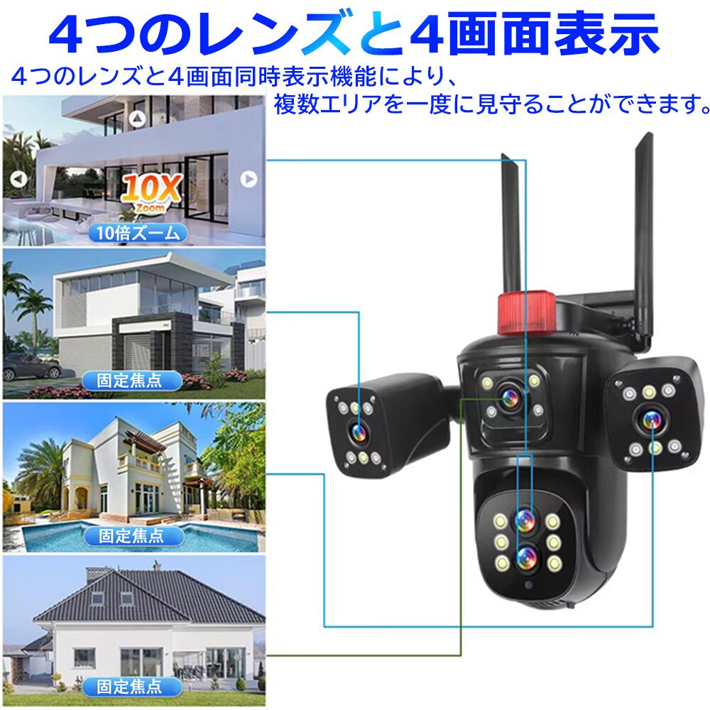 防犯カメラ 屋外 家庭用 ワイヤレス wifi 監視カメラ 高画質 PTZ 360度広角 AI人体検知 自動追尾 双方向会話 警報通知 遠隔操作 家族共有 IP66防水 夜間カラー ネットワークカメラ スマホ対応 128GBMircoSDカード対応 24時間録画 玄関/店/自宅見守り