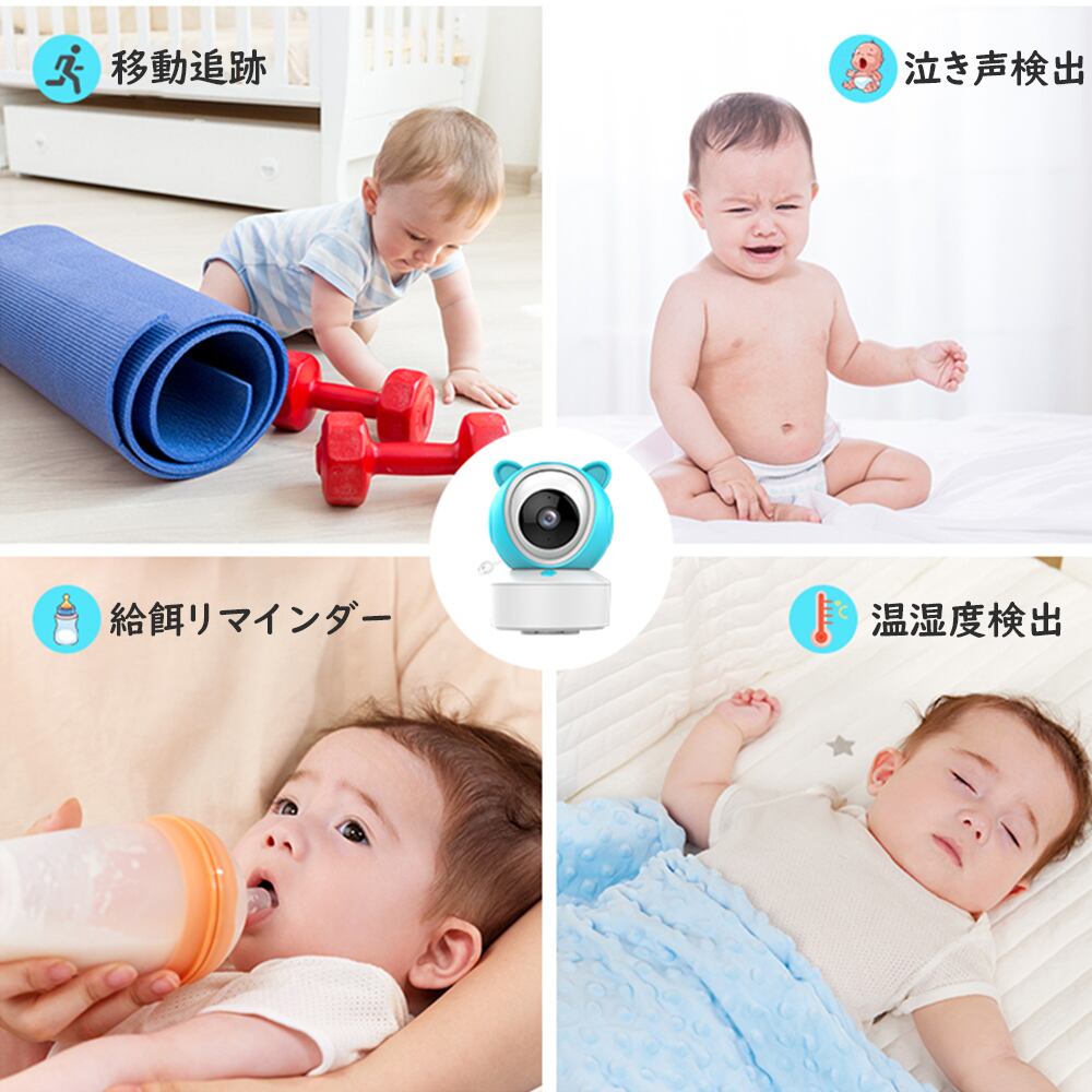 見守りカメラ ペットカメラ ベビーモニター 犬猫 屋内 家庭用 小型 高画質 ワイヤレス スマホ 夜間撮影 高画質 動作検知 泣き声検知 遠隔操作 首振り 温度 室温 音声 赤ちゃん 出産祝い