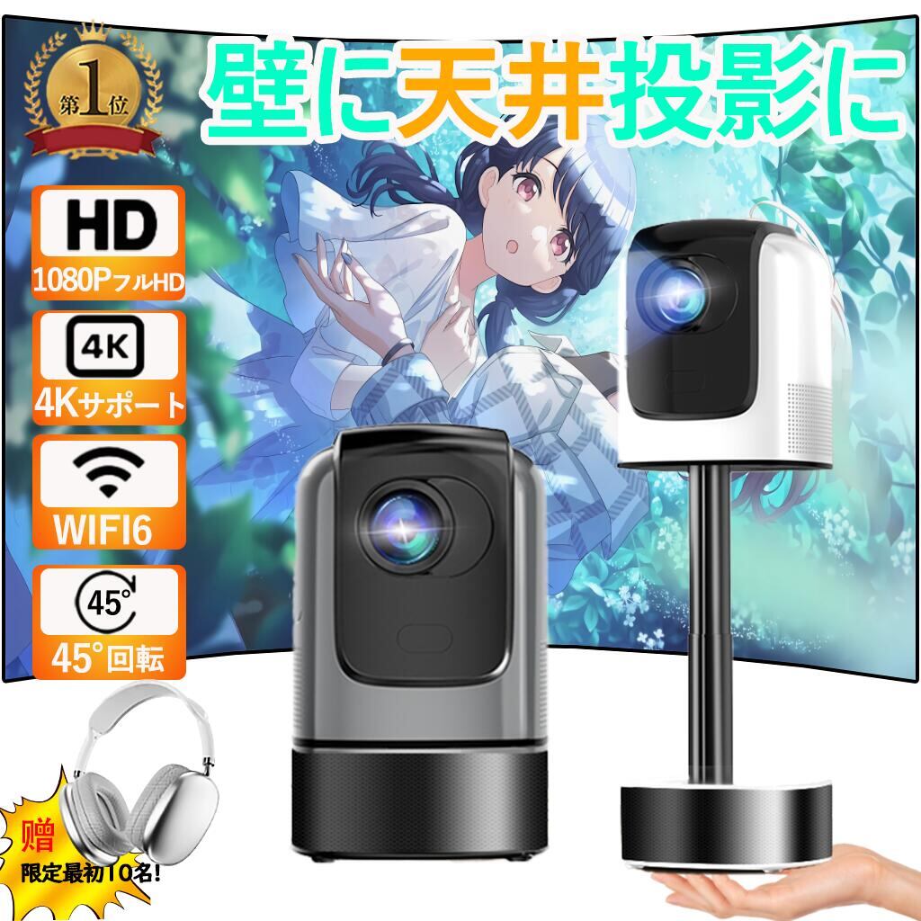プロジェクター 家庭用 天井投影 軽量 本体 小型 250ANSI 4K対応 高画質 静音 5G WiFi6 Android 9 Bluetooth5 高性能 自動台形補 電動フォーカス ゲーム スマホ