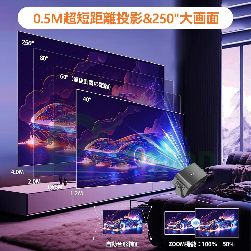 プロジェクター 家庭用 電動フォーカス 小型 天井投影 4K対応 超高清 高輝度 Netflix/YouTubeb Android 13 高画質 静音 自動台形補 軽量 5G wi-fi 6 Bluetooth 5.2 ホームシアター 子供 壁 簡単設定 HDMIケーブル・リモコン付属