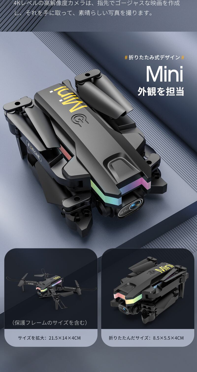 ドローン カメラ付き 4K 高画質HD 軽量 vlog 2カメラ 200g以下 免許不要 折り畳み式 バッテリー3個 広角カメラ ジェスチャー 空撮 リターンモード 子供向け 初心者 携帯アプリ制御 高度維持 軌跡飛行 練習機 収納ケース ウェィポイントモード 国内認証済み 誕生日 プレゼント