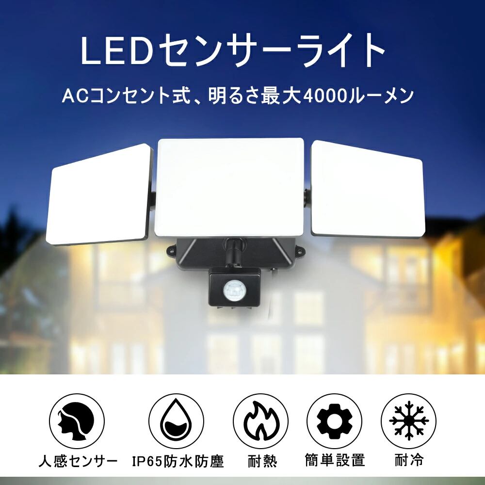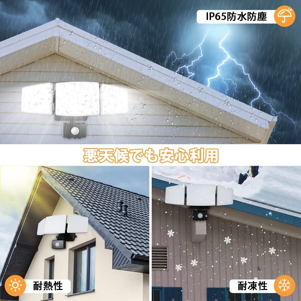 最新型LED センサーライト 屋外 高輝度 3灯 35W コンセント式 360°角度調整可能 3つ知能モード 壁掛け IP65防水防塵 防犯ライト 2モード 回転式 明るい 3200lm 高輝度 照明 器具 玄関 庭先 駐車場 ガレージ 入口 ベランダ 通路 防災に対応