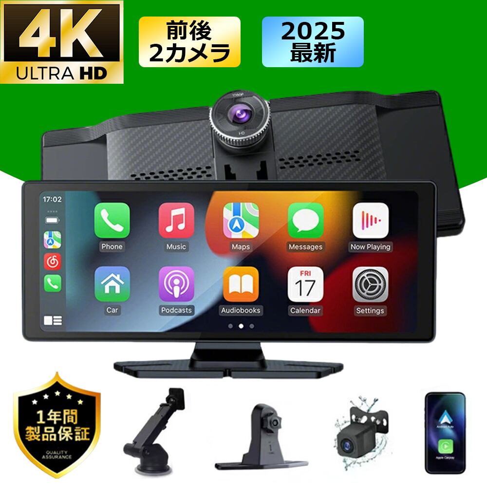 カーナビ ディスプレイオーディオ 音楽再生 ワイヤレスCarplay/AndroidAuto対応車載モニター 10インチISP液晶画面 ドライブレコーダー 前後カメラ ポータブルカーナビ オーディオ一体型ナビドライブレコーダー機能 carplay ワイヤレス カーオーディオ カーナビ 2025