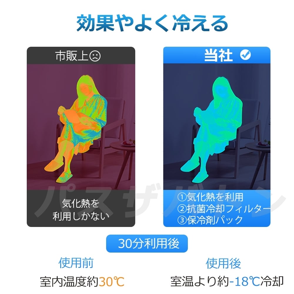 豊富な機能とコスパが魅力の大型冷風扇風機として、送風・冷却・加湿・空気清浄の4つの機能を備え、保冷剤付きタイプ