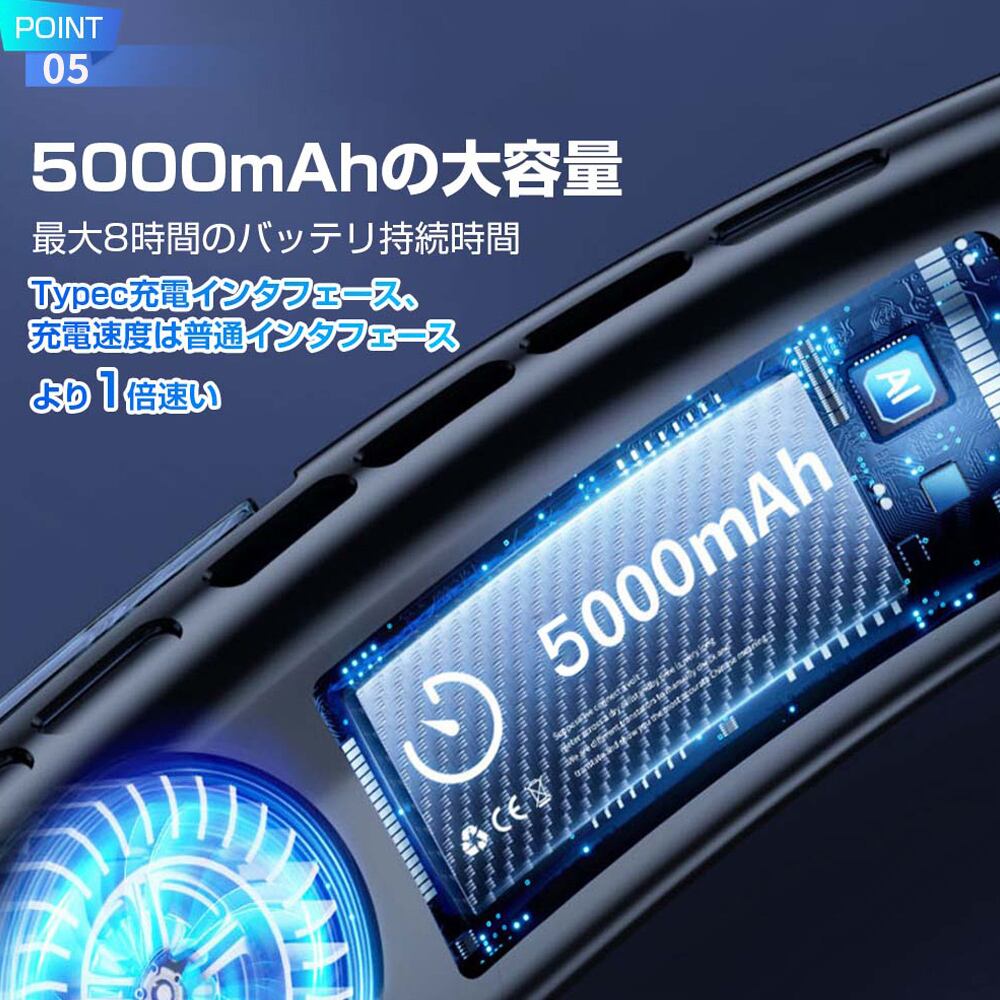 【5200mAh進化版節電バッテリー】大容量の5200mAhバッテリーを搭載しています。従来の2000mAhモデルよりも2倍の電池量を持っているため、長時間の使用でも安心して使えます。 3段階の風量調整が可能です。