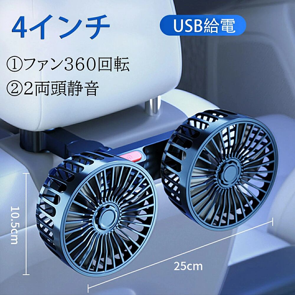 車載扇風機 車 扇風機 ツイン ファン カーファン 低騒音 ヘッドレスト ダブルファン 車内 車外 360°角度調節可能 USBタイプ カーファン ツインファン 3段階風量調節 取り付け簡単 ダブルファン 熱中症対策 電動ファン 汎用タイプ 夏対策 涼しい