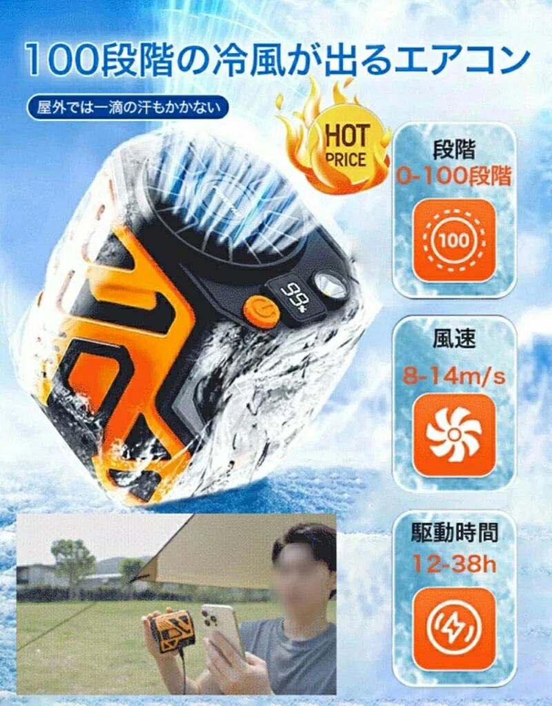商品特徴 この腰に取り付けられたファンは。職場や屋外で丸一日涼みましょう。この小さなファンのサイズは9.8*8.9*7.6センチ、この製品は小型で持ち運びが可能で、特に腰のために設計されています。