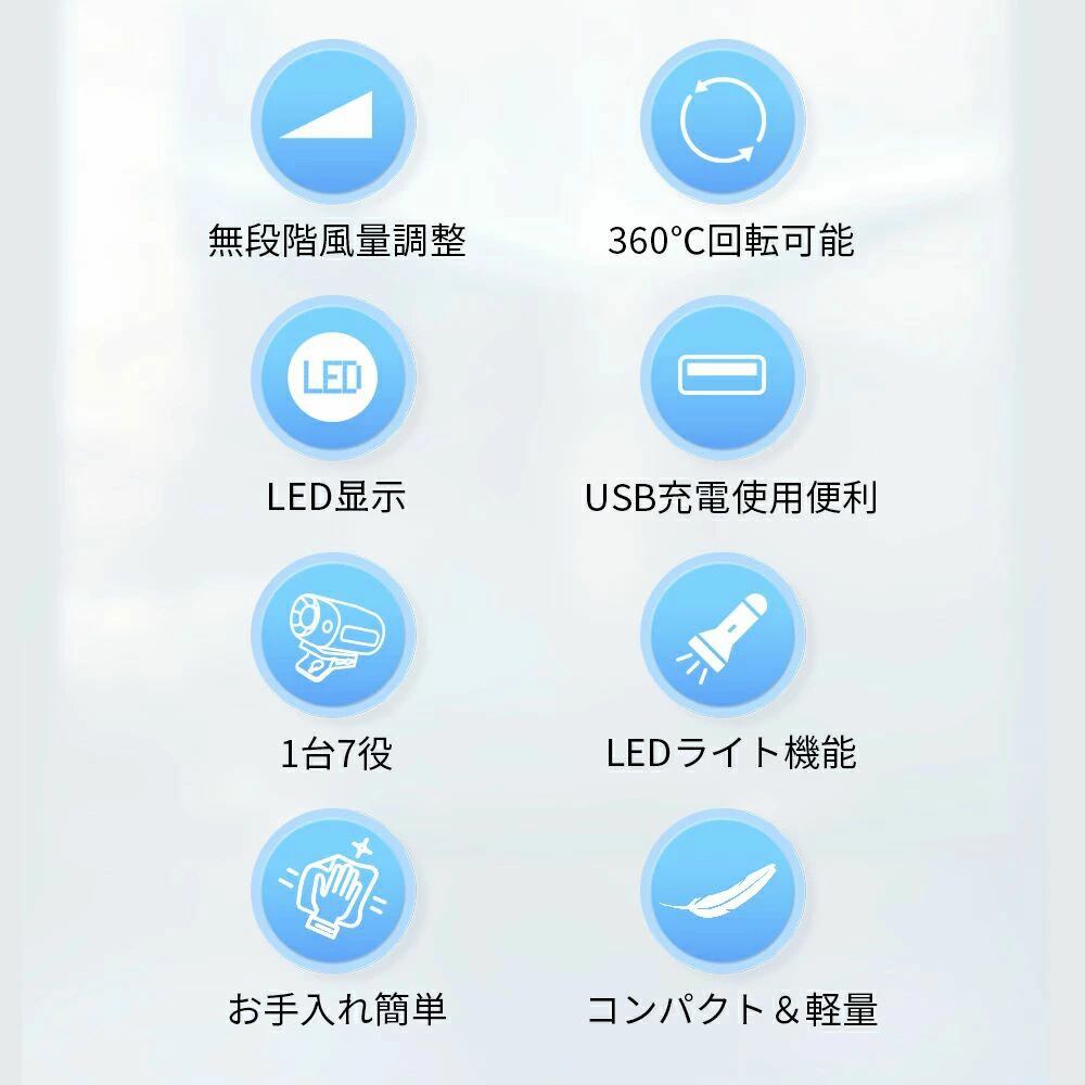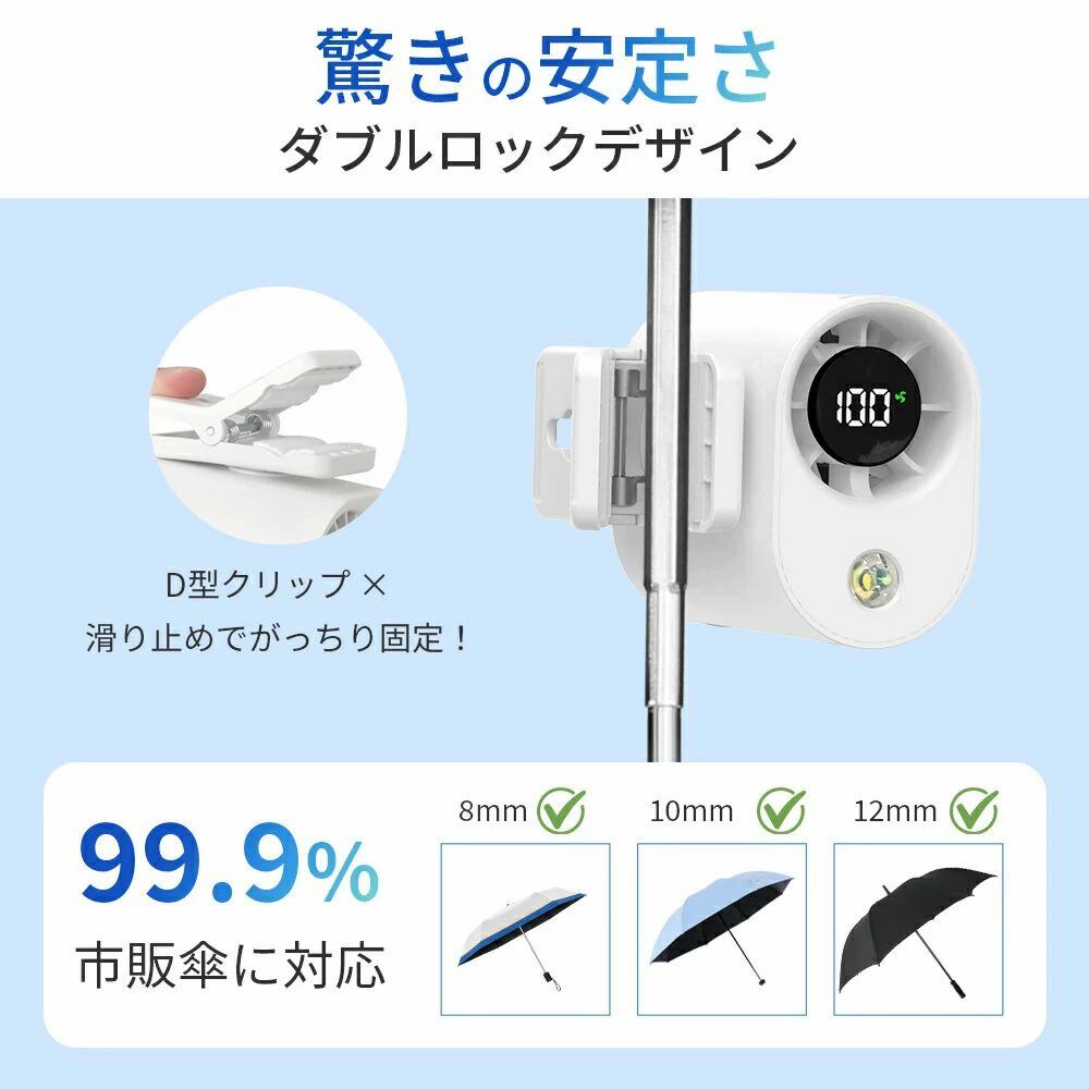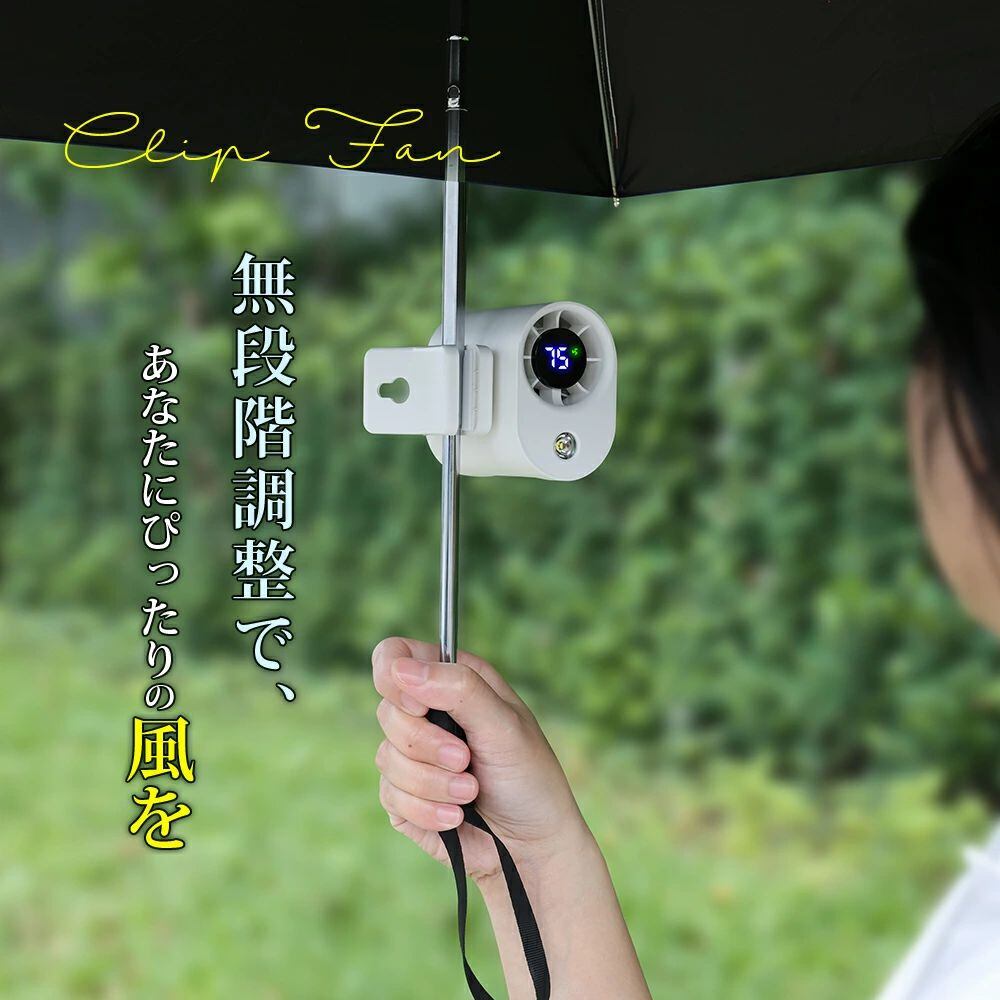 日傘ハンディファン 7WAY クリップファン 日傘セット 扇風機 クリップ 日傘に挟む 携帯扇風機 ハンディファン ポータブルファン LED付き モバイルバッテリー 首掛け 腰掛け 日傘 傘用充電式 超軽量 360度調整 小型 コンパクト ミニファン