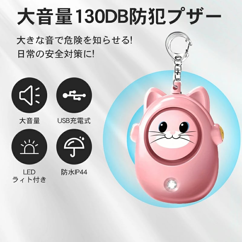 防犯ブザー 防犯アラーム 2個セット 防犯警報 防犯グッズ LEDライト付き IP44 防水 防犯ベル USB充電式 大音量130dB 男の子 女の子 子供 女性 高齢者 簡単に使用 シンプル 防犯 ブザー 小学生 通学 高齢者 持ちやすい 軽い 送料無料 1年間保証