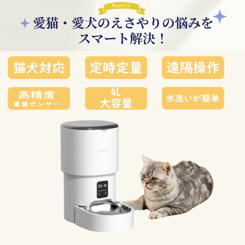 【2025新登場】 自動給餌器 猫 犬 自動餌やり機 ペット給餌機 スマホ遠隔 ペット給餌器 タイマー 自動給餌機 ペット自動給餌器 猫 定時定量 4L 大容量 透明タイプ 手動可 ステンレス製ボウル 清潔便利 2WAY給電 乾燥剤
