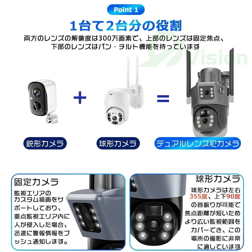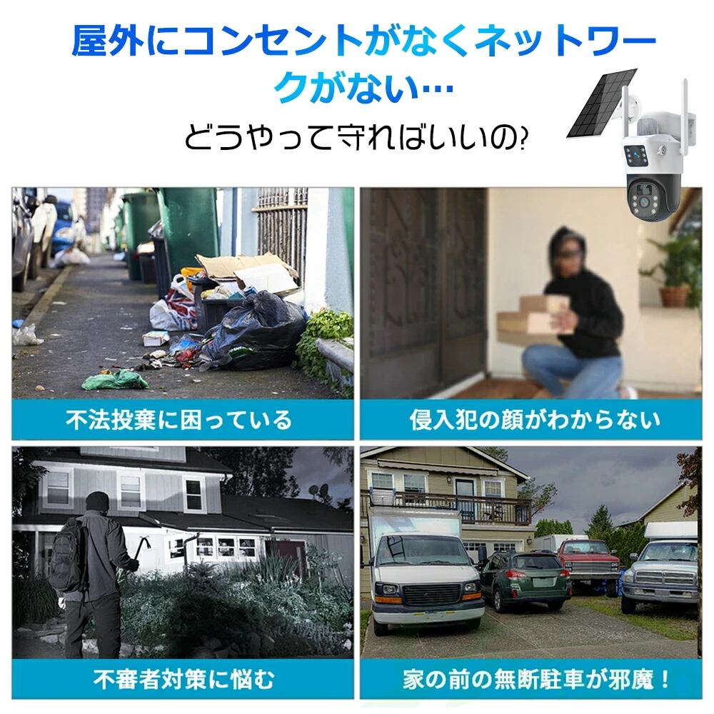 防犯カメラ 屋外 ソーラー 400万画素 監視カメラ ワイヤレス wifi ソーラー 電池式 ソーラーパネル付き 360°広角 双方向通話 音声付き録画 人体検知 簡単設置 移動追跡 録画機能 IP66防水 スマホ 防犯灯付き 車上荒らし