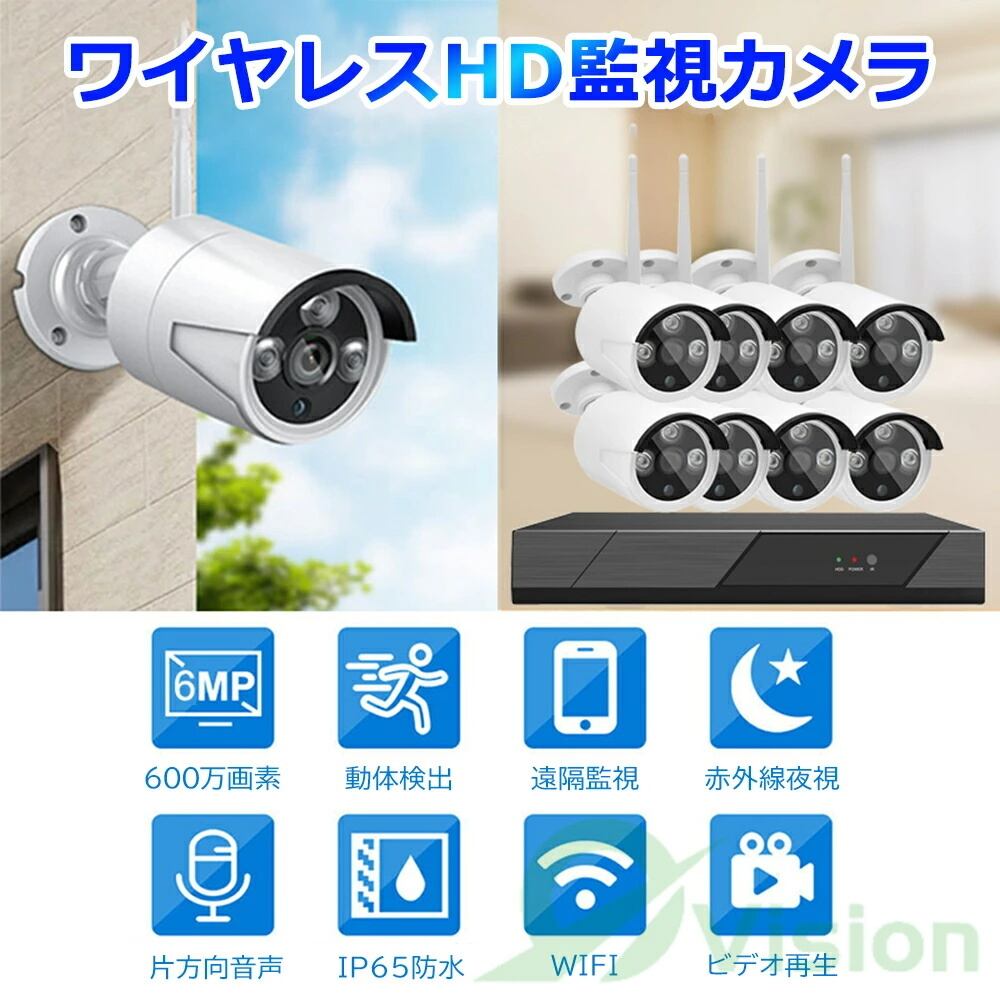 ワイヤレス接続・簡単操作】 ワイヤレスの防犯カメラですので、設置が簡単で配線工事が不要です。IPカメラとレコーダーの電源を入れるだけで自動にコードをマッチングしますので、ローカル監視する場合、インタネット接続なしに監視や再生が可能です。遠隔操作する場合はLANケーブルでNVRシステムとホームルータを接続する事が必要となります。