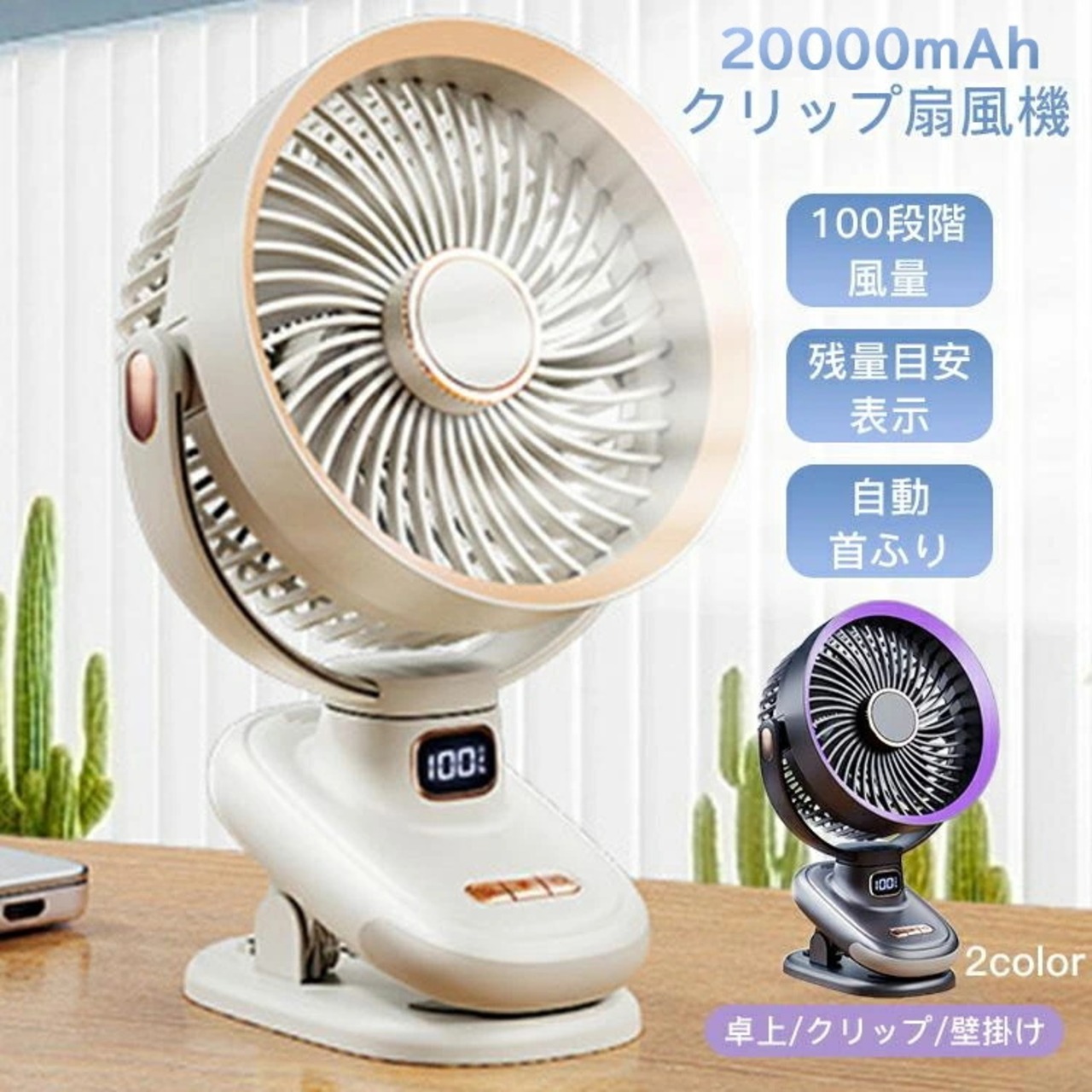 卓上扇風機 クリップ式 携帯扇風機 5段階風量調節 1台4役 サーキュレーター 小型 強力 大風量 ミニ 壁掛け 自動首振り コードレス タイマー 風量5段階 USB充電 残量目安表示 小型 軽量 ベビーカー扇風機 贈り物 熱中症対策