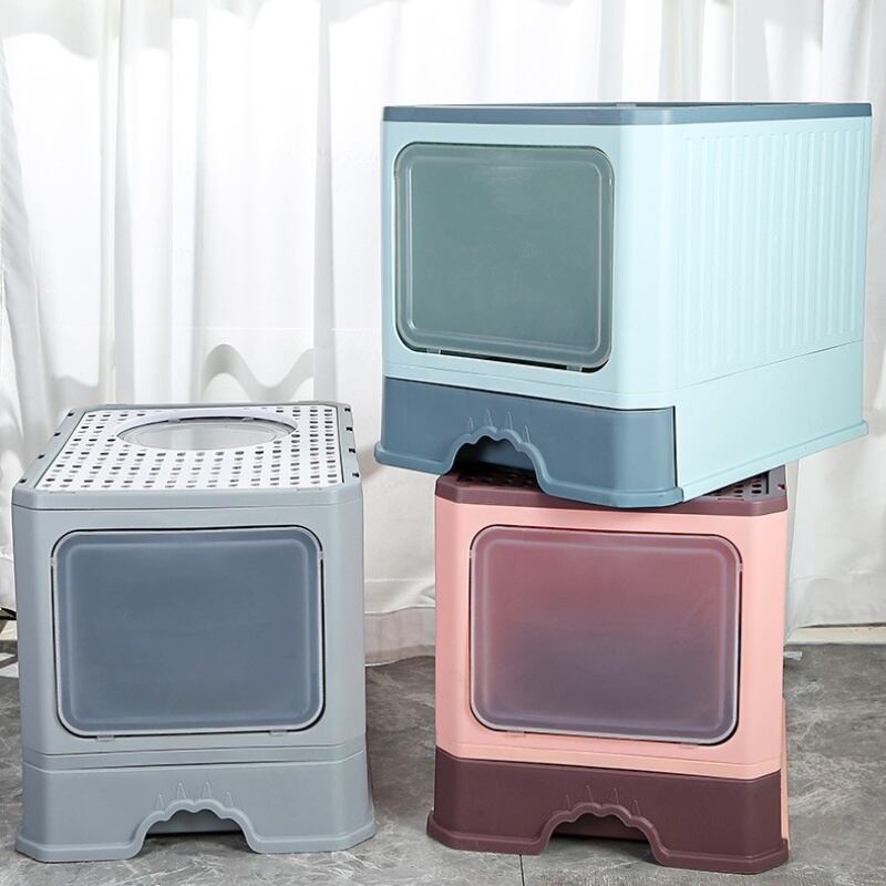 【2025 年新登場】猫用トイレ 猫のトイレ フルカバー 2ドア ペット用品 猫用品 特大サイズ 完全密閉型 折りたたみ 脱臭トイレ容器 掃除簡単 ニオイ防止 猫砂 飛び散り防止 脱臭抗菌 猫用トイレ 防水設計 とニオイの広がり防止機能付き