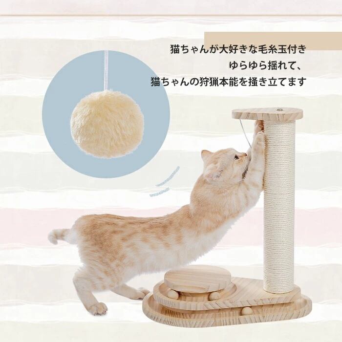 【2025 新登場】猫 おもちゃ 爪とぎ 木製 回転 遊ぶ盤 運動不足 ストレス解消 麻 綿 縄巻き 猫用品 ペット用 猫タワー 爪研ぎ 爪みがき 竹製 ボール回転盤 知育 猫じゃらし ペット用品 ボール タワー