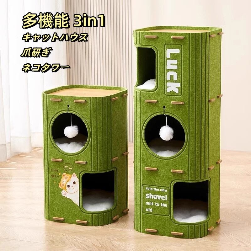 【2025 新登場】猫ハウス キャットタワー 猫用品 暇つぶし ネコベッド 多機能 多頭飼い 猫 マンション 収納簡単 ストレス解消 室内 猫 寝床 猫ベッド 爪研ぎ 二階 三階 四季通用 組立簡単 通気 ペット用品 多層構造 ペットハウス 滑り止めマット