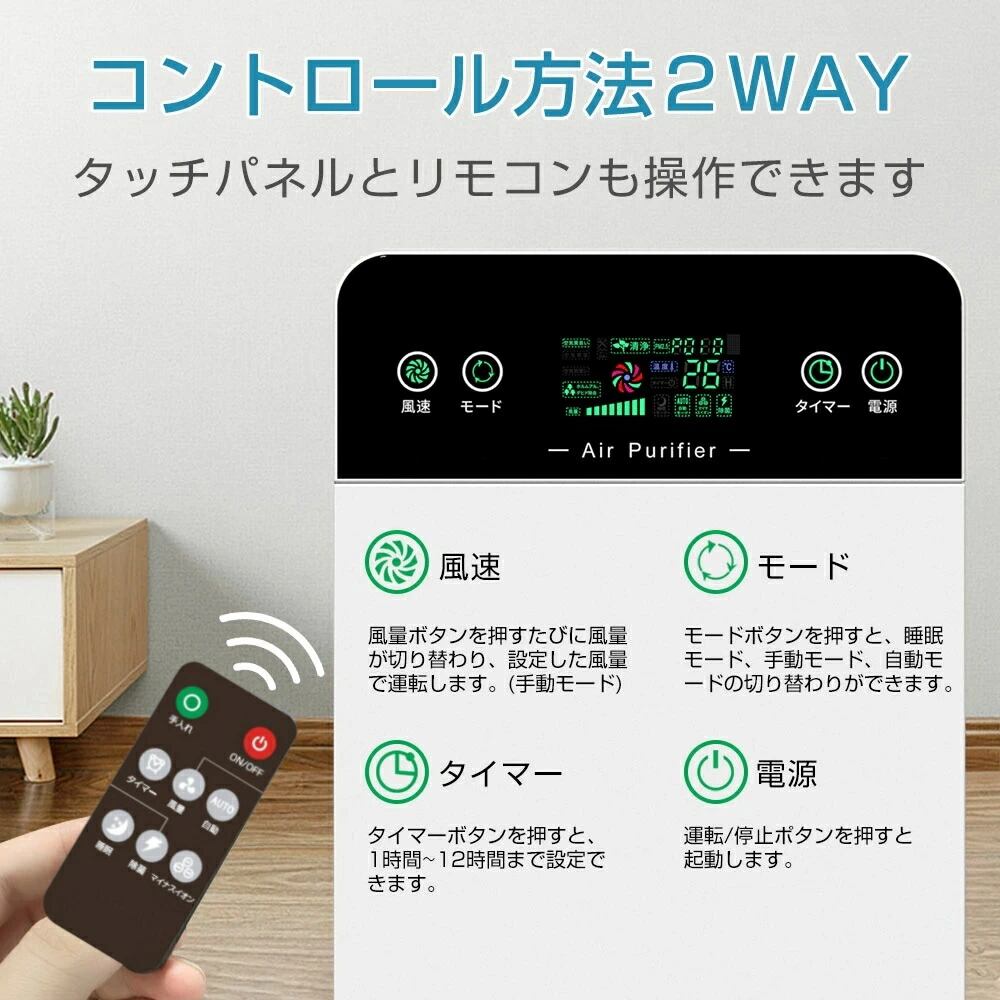 【2025新登場】空気清浄機 ペット 6重空気清浄 花粉 ペット コンパクト 脱臭機 タバコ 黄砂 フィルター 部屋 脱臭 コロナウイルス ペット臭 UV除菌 静音 ハウスダスト ウイルス PM2.5 リモコン タッチパネル タイマー 空気質検知 猫 犬 匂い 生活臭