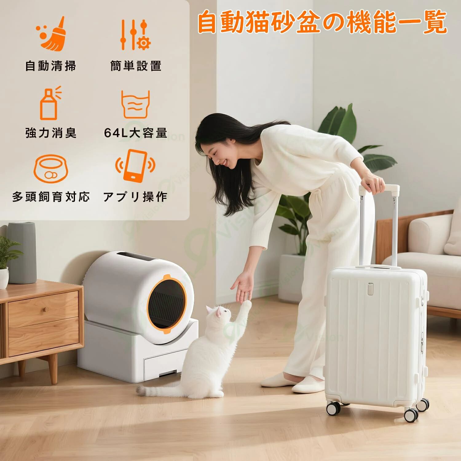 自動清掃UP! 汚れやニオイは機械にお任せ! 手間いらず!「即時清掃」も「遅延清掃」も、スマホでモードを設定するだけで自動お掃除!もうかがみ込んで片付ける必要はありません。