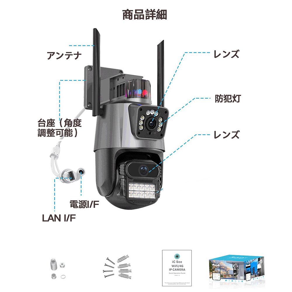 防犯カメラ 屋外 600万画素 デュアルレンズ デュアル画面 ワイヤレス wifi 動体検知 SDカード録画 IP66防水 自動追跡 遠隔監視 暗視 監視カメラ 見守りカメラ
