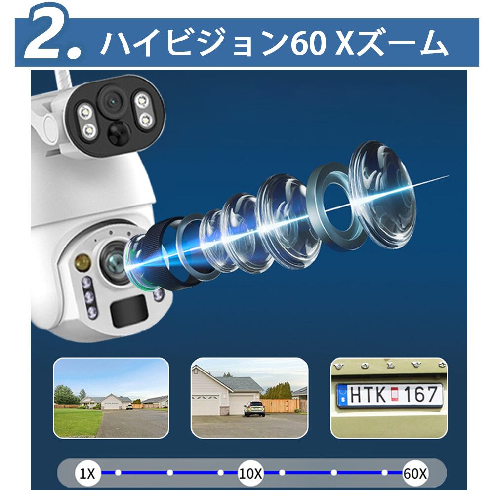 防犯カメラ 屋外 ソーラー 600万画素 ワイヤレス wifi デュアルレンズ デュアル画面 監視カメラ 防水 人体検知 電源不要 録画機能 自動追跡 60Xズ一ム