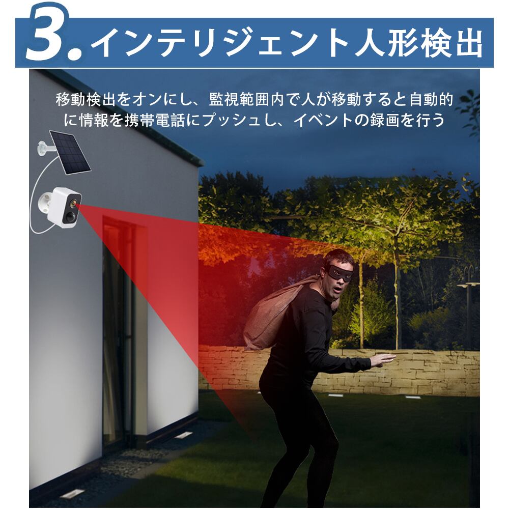防犯カメラ 屋外 ソーラーパネル 300万画素 高画質 ソーラー充電式 防水 人感センサー ワイヤレス wifi SDカード 監視カメラ 音声 スマホ 遠隔 赤外線夜視