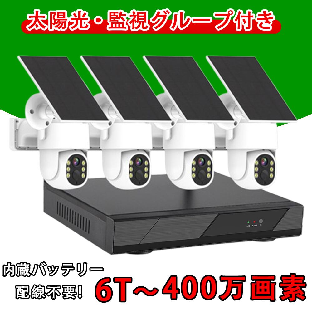 防犯カメラ 屋外 ソーラー 家庭用 400万画素 4台電池式 ワイヤレス wifi 工事不要 電源不要 人体検知 録音 双方向通話 遠隔操作 IP66防水 夜間 録画機 スマホ NVR 玄関