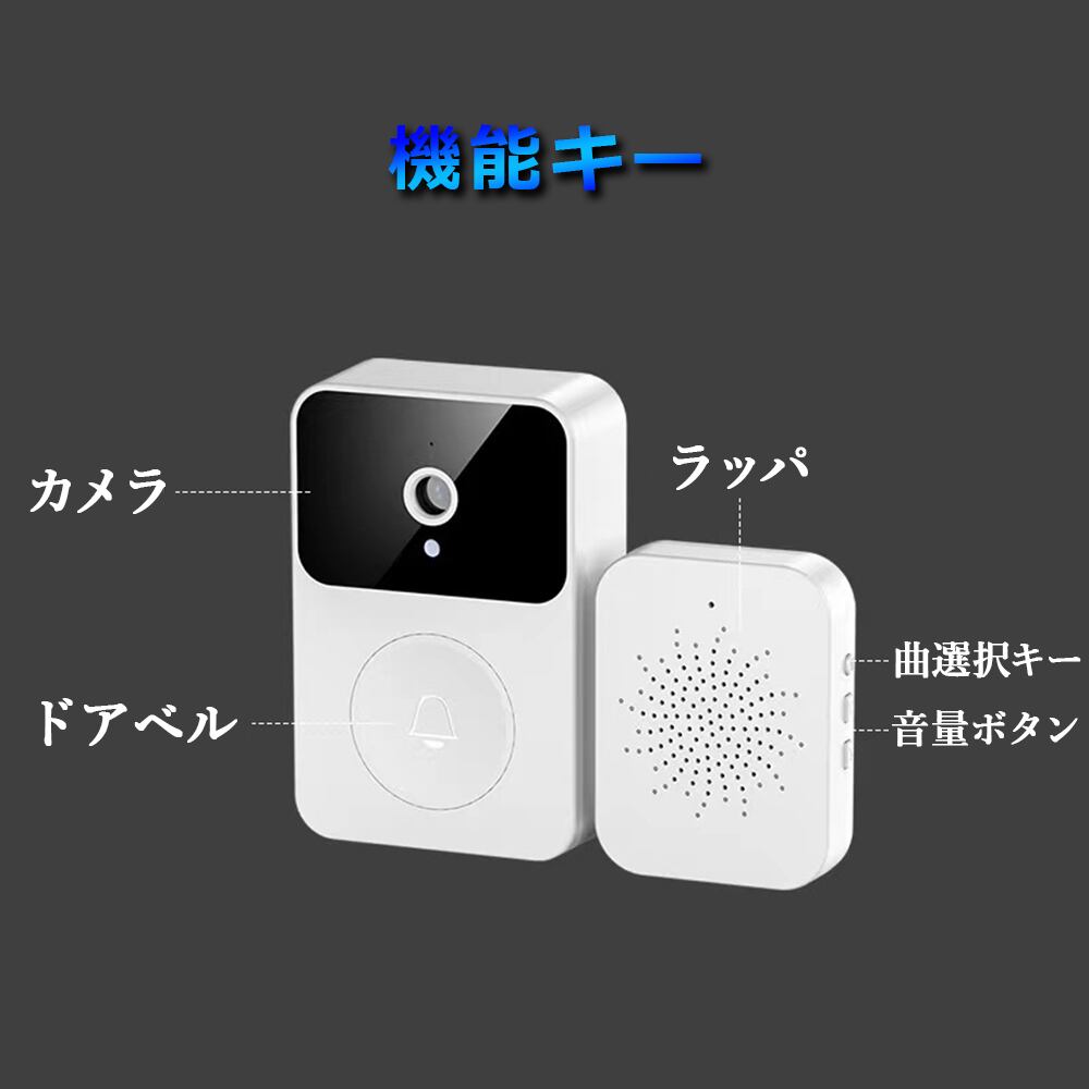 インターホン ワイヤレス ドアベ儿防犯力メラ 工事不要 カメラ付き ドアホン 通話 スマホ連動 ビデオドアベル 無線 WIFI 防犯カメラ 双方向音声 遠隔監視 家族共有 呼び出しチャイム 防犯対策 ドアチャイム ドアベル
